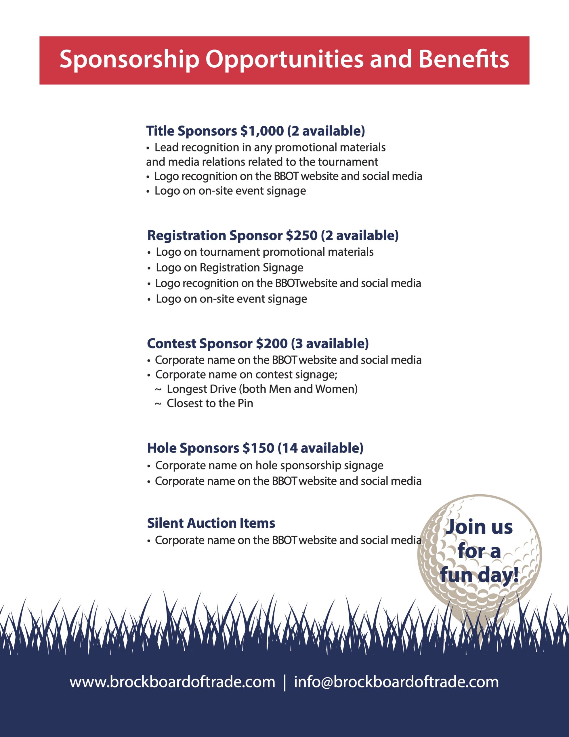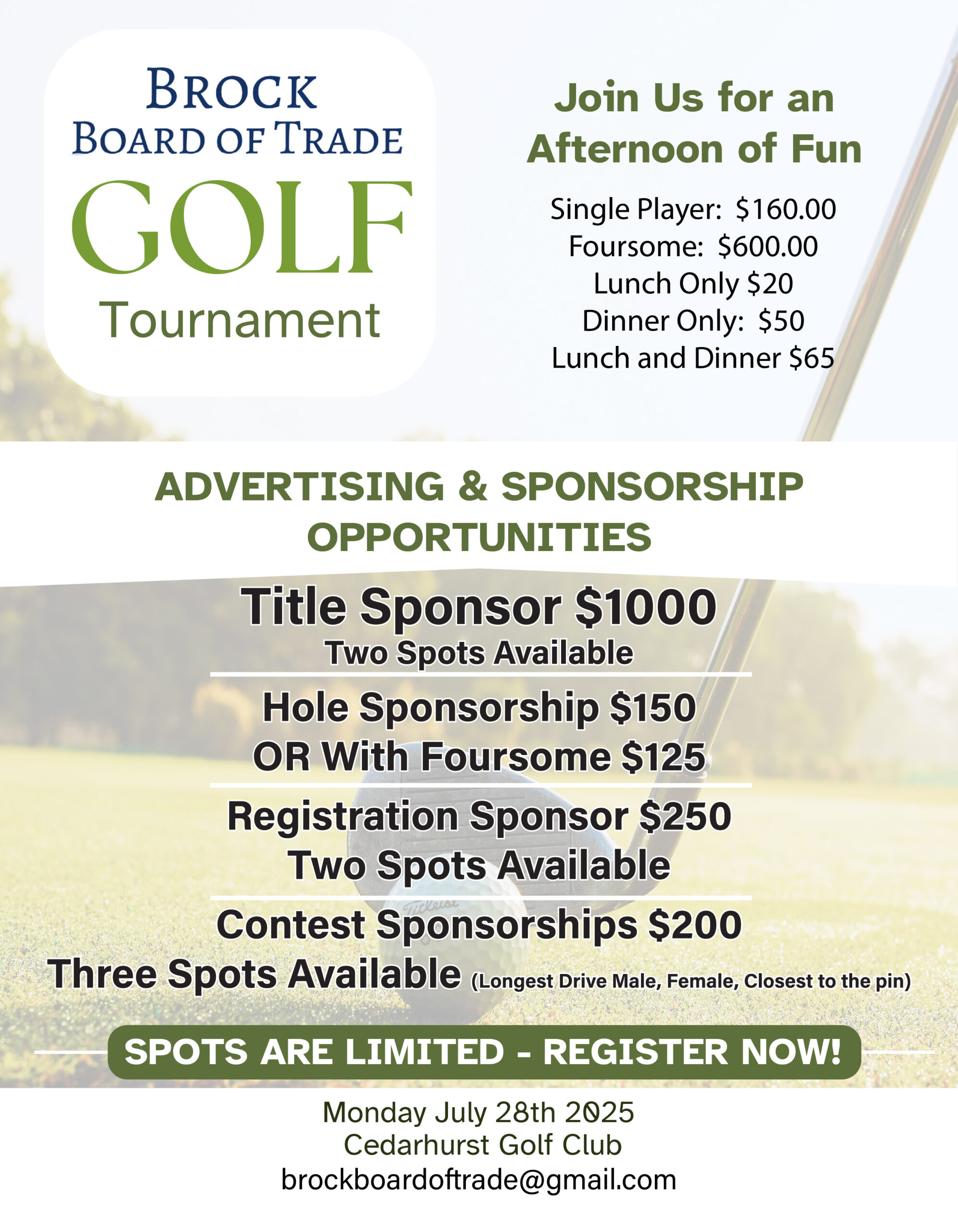 The golf tournament is BBOT’s major fundraiser for the year. It allows us to serve our members and the business community at large in a bigger way. As we continue to grow, we will keep adding more training, workshops and events for our members and the public to continue to help improve the business community in Brock in many different capacities.